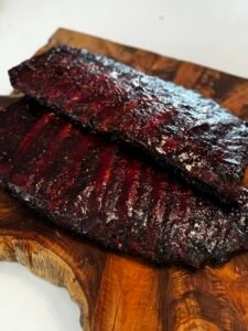 - Voorbereiding: Ribs inwrijven met “The Rub” en 30 min laten intrekken