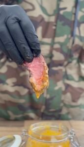 - Of dip de stukjes vlees in de gesmolten cowboy boter – Chef's Kiss!